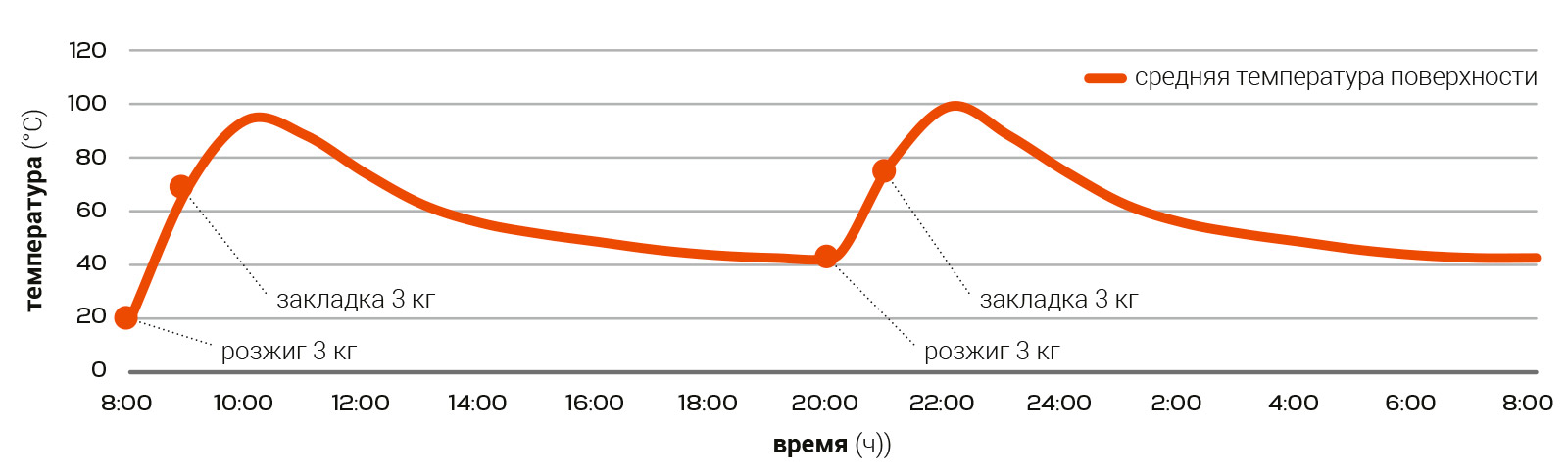 при излучение в течение 12 часов от общей закладки 6 кг дров